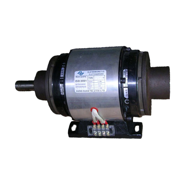 電磁離合剎車組,電磁離合器之轉(zhuǎn)子被固定于入力軸上,其之電樞與電磁剎車器則在同軸而形成的出力軸,電磁離合器之軛與電磁剎車器裝置于機架上。當電流通過電磁離合器時,出力軸即被帶動當電磁離合器分離,當電磁剎車器有電流通過時,出力軸就會停止運轉(zhuǎn)。